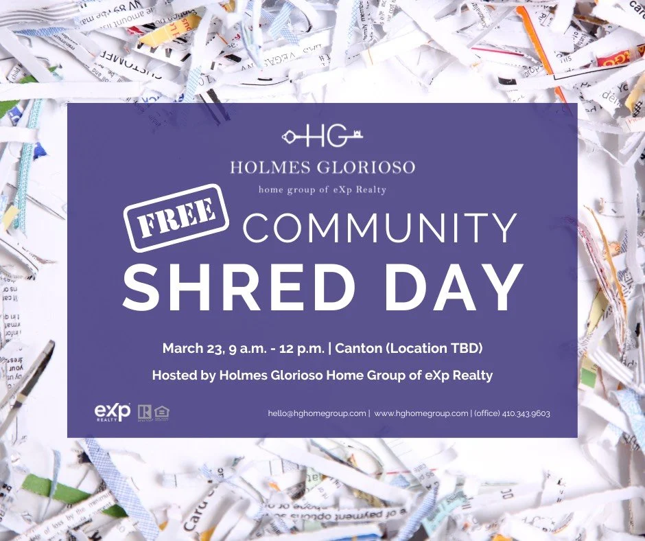 The team at Holmes Glorioso Home Group of eXp Realty is sponsoring a FREE Shred Day on Saturday, March 23 from 9 am to noon. Neighbors are invited to protect their identities by safely destroying old documents and items with personal information on them. Location TBD – will be announced on our social media closer to the date. For more info, email Hello@hghomegroup.com.