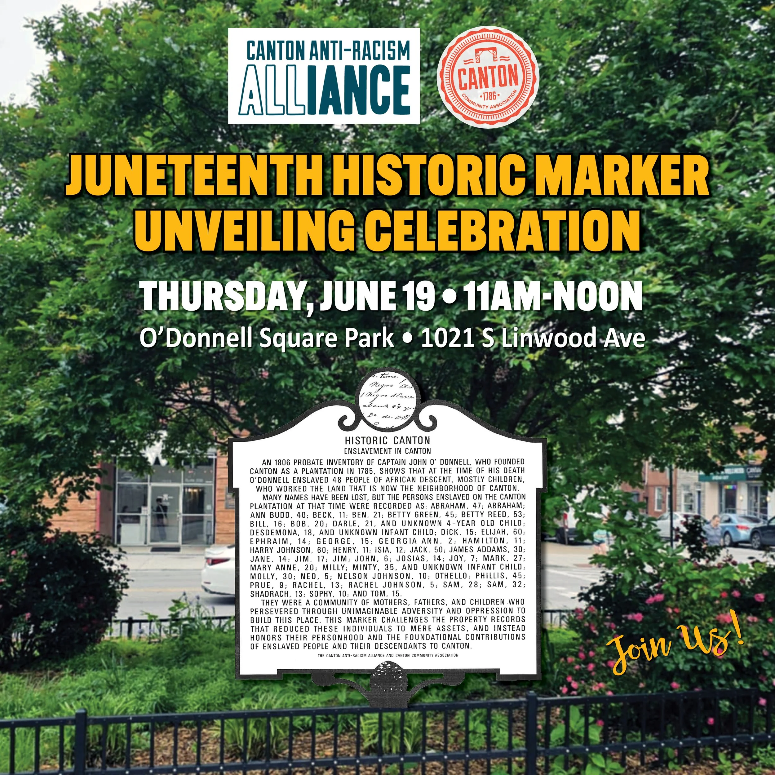 /The Canton Anti-Racism Alliance and the Canton Community Association (CCA) invite the community to a Juneteenth Celebration on Wednesday, June 19 at 11 a.m. at O’Donnell Square Park.